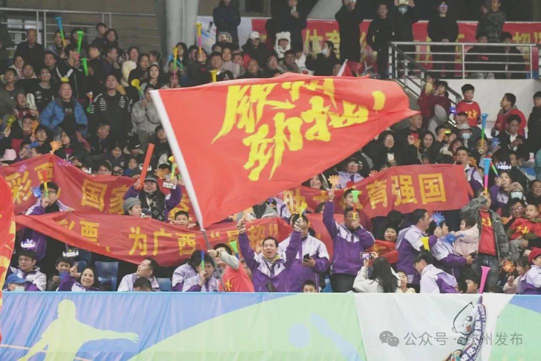 钦州市体育中心内灯火璀璨,2.5万名观众的呐喊声震彻全场。赵冠雄 摄